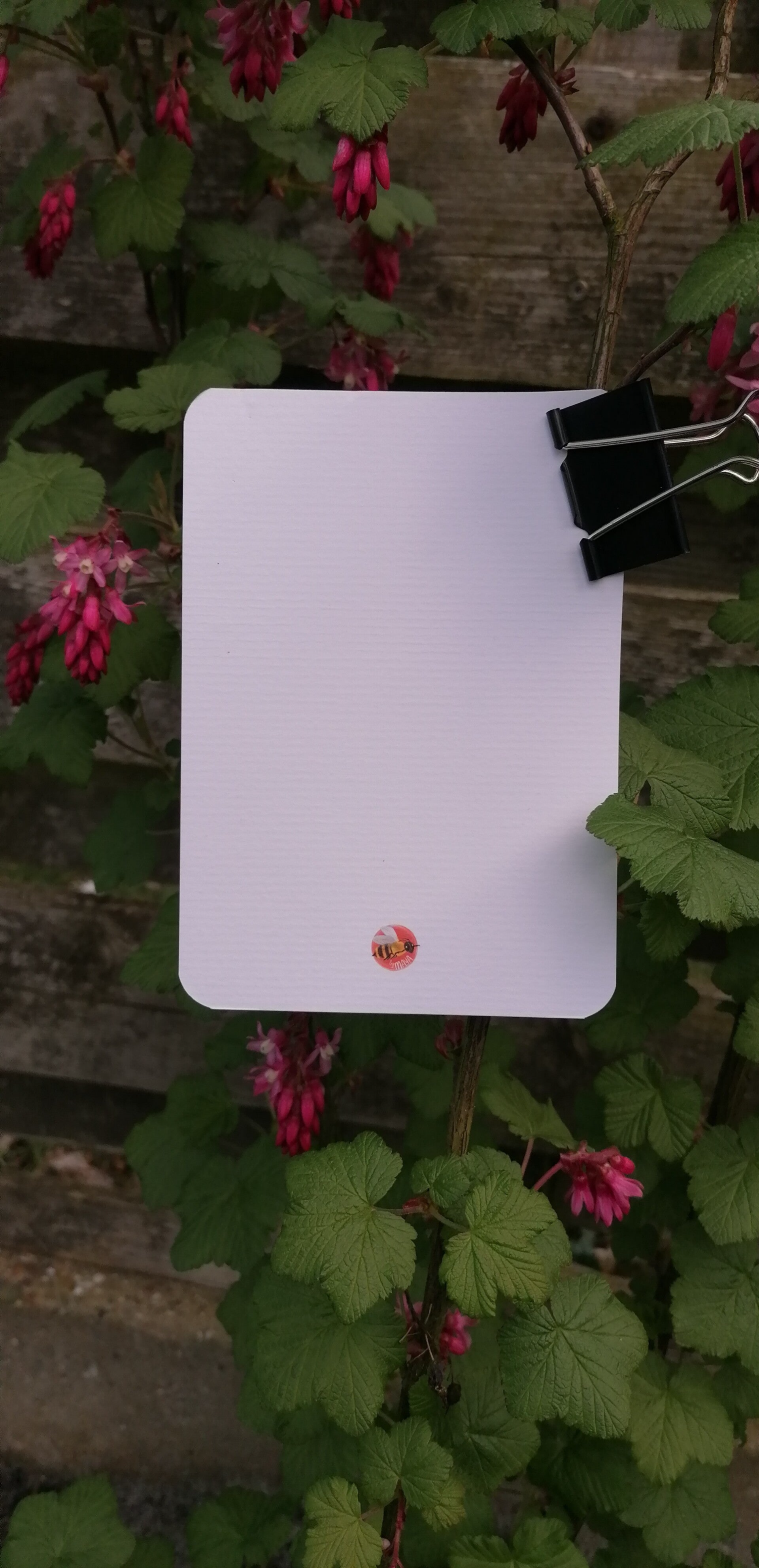 Enkele wenskaart met de afbeelding van een babykonijn in de draagdoek bij zijn ouder. A6 formaat met ronde hoekjes, gedrukt op Oud Hollands papier (lichte lijnenstructuur), inclusief enveloppe.