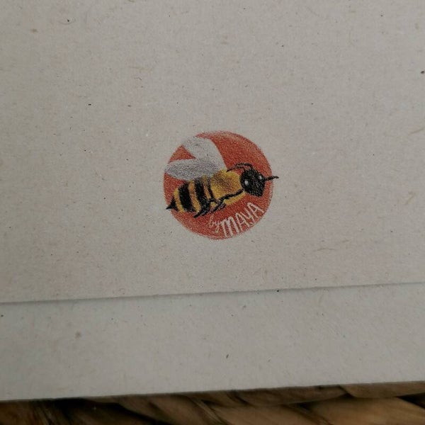 Enkele wenskaart 'Appeltje eitje'. 13,5x13,5 cm groot, gedrukt op ecologisch papier. Dit papier heeft een lichte zandkleur en is goed beschrijfbaar. De enveloppe is van dezelfde papiersoort.