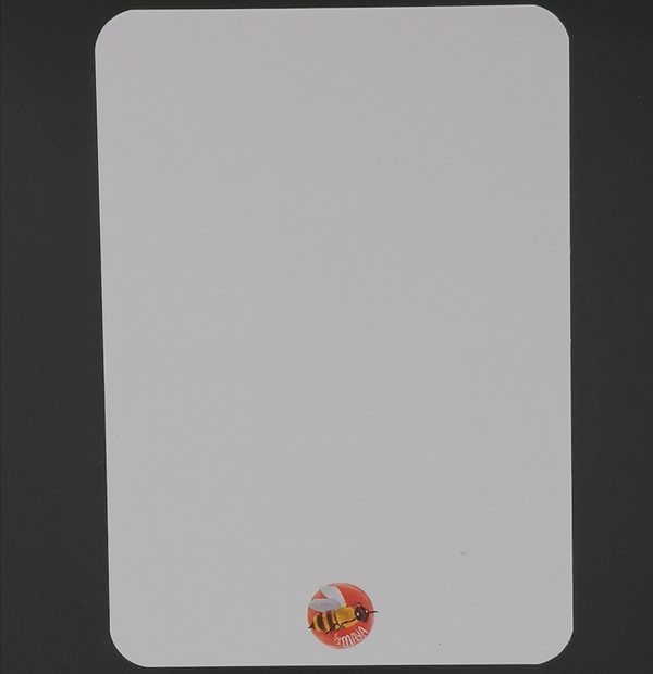 Enkele wenskaart Bee Yourself met de afbeelding van een meisje dat zichzelf beschilderd met bijenstrepen. A6 formaat met afgeronde hoekjes, gedrukt op een matte papiersoort in een licht gebroken witte kleur. Inclusief enveloppe.